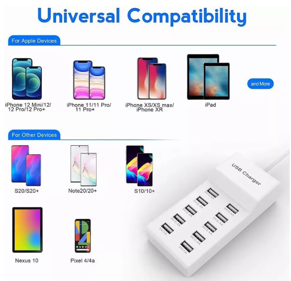 Rapid Charger – Charge your devices at high speed, compatible with all 5V USB-charged devices like iPad, iPhone, Samsung tab, smartphones, external battery, Bluetooth speaker, headset and so on.